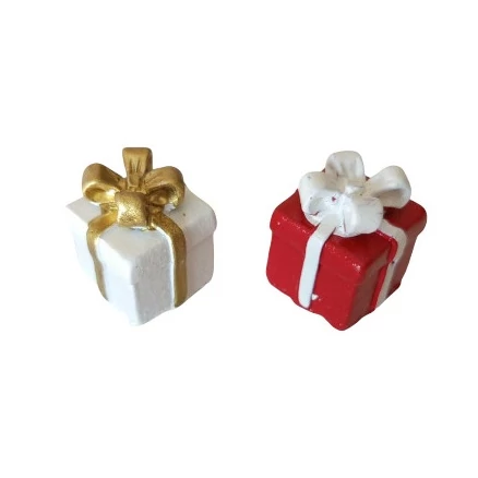Ajándékdoboz figura, piros/fehér poly - 1db