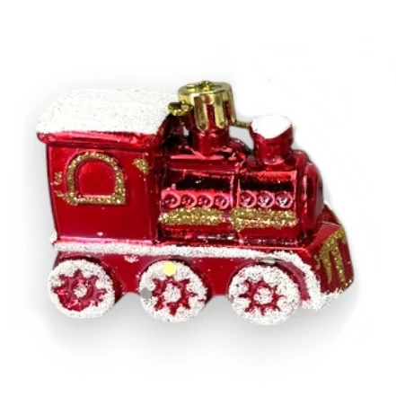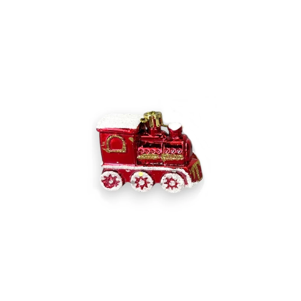 Akasztós havas, glitteres mozdony (műanyag) - kicsi piros