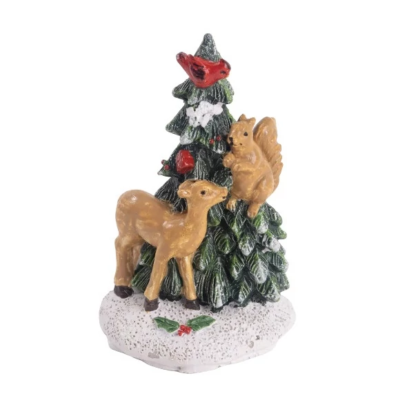 Téli életkép - Őzike és mókus fenyőfával figura, poly