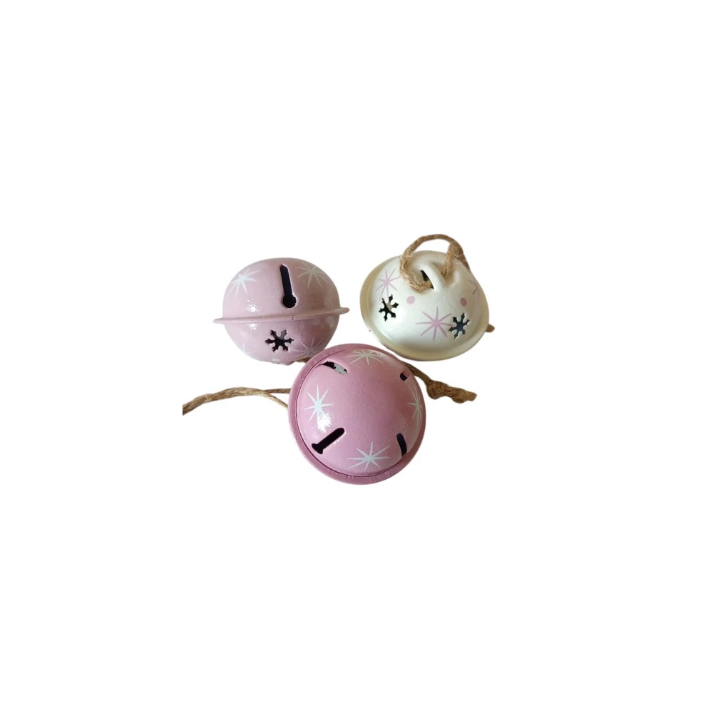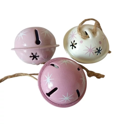 Csillagos-hópelyhes gömbcsengő szett, fehér-pink-mályva, 3db/szett