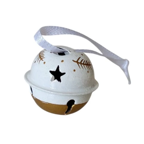 Arany fenyőágas-csillagos gömbcsengő, akasztós, fehér-arany - 3cm