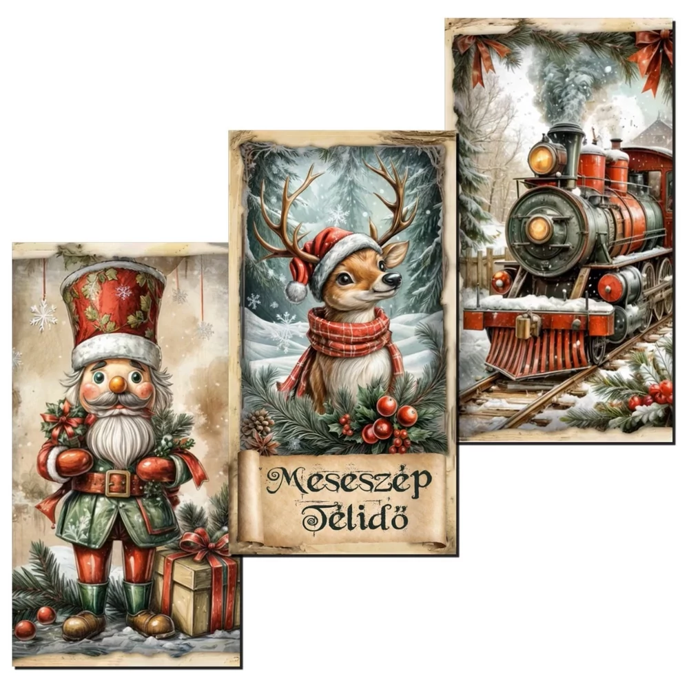 Nyomtatott dekorkarton - Karácsonyi piros-zöld téma táblák 3db/csomag