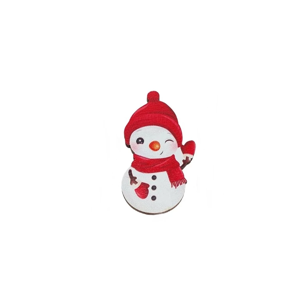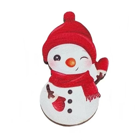 Fa dekor - Színes piros sapkás integetős hóember