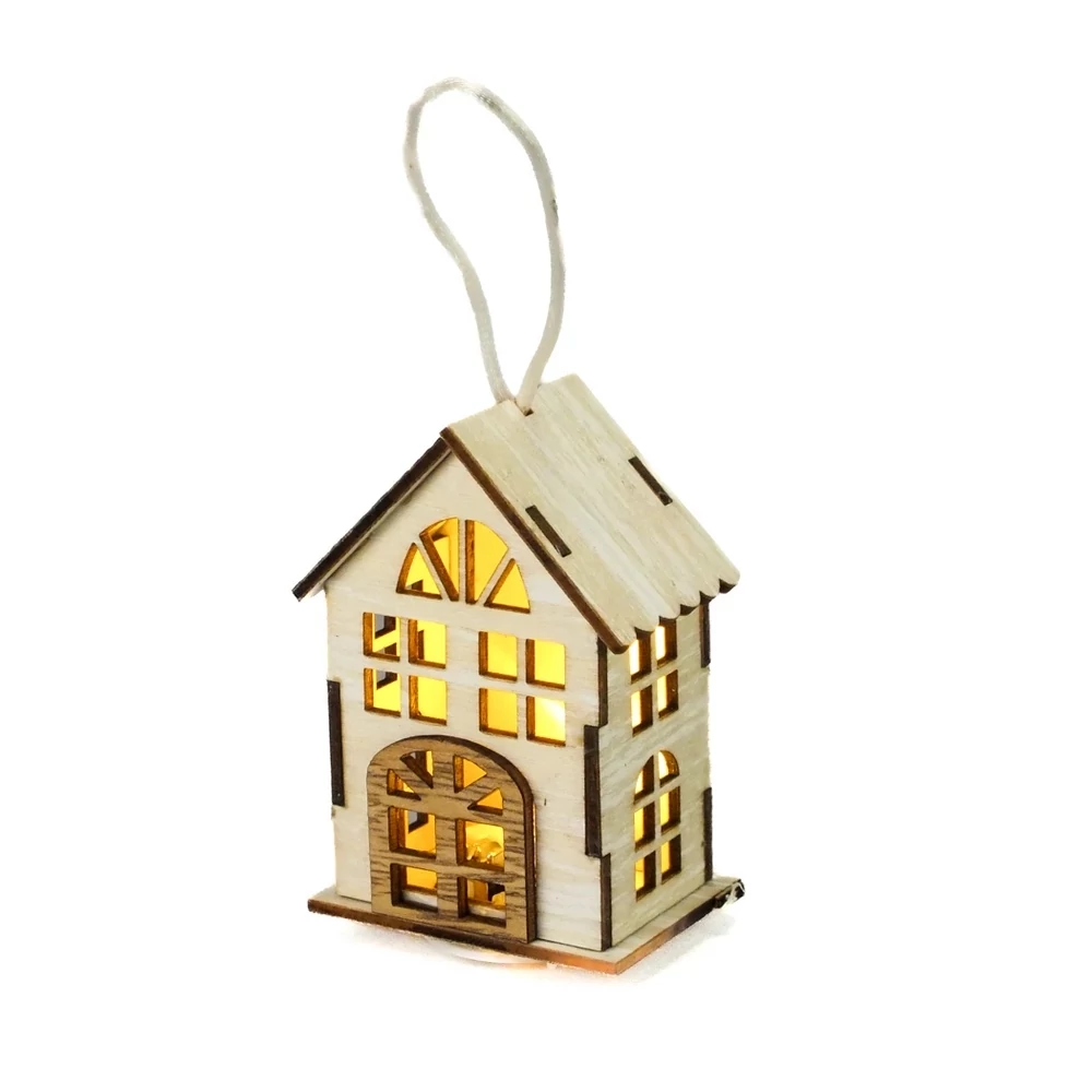 Mini, világítós faház akasztóval, ajtó- és asztaldíszbe vagy karácsonyfára.