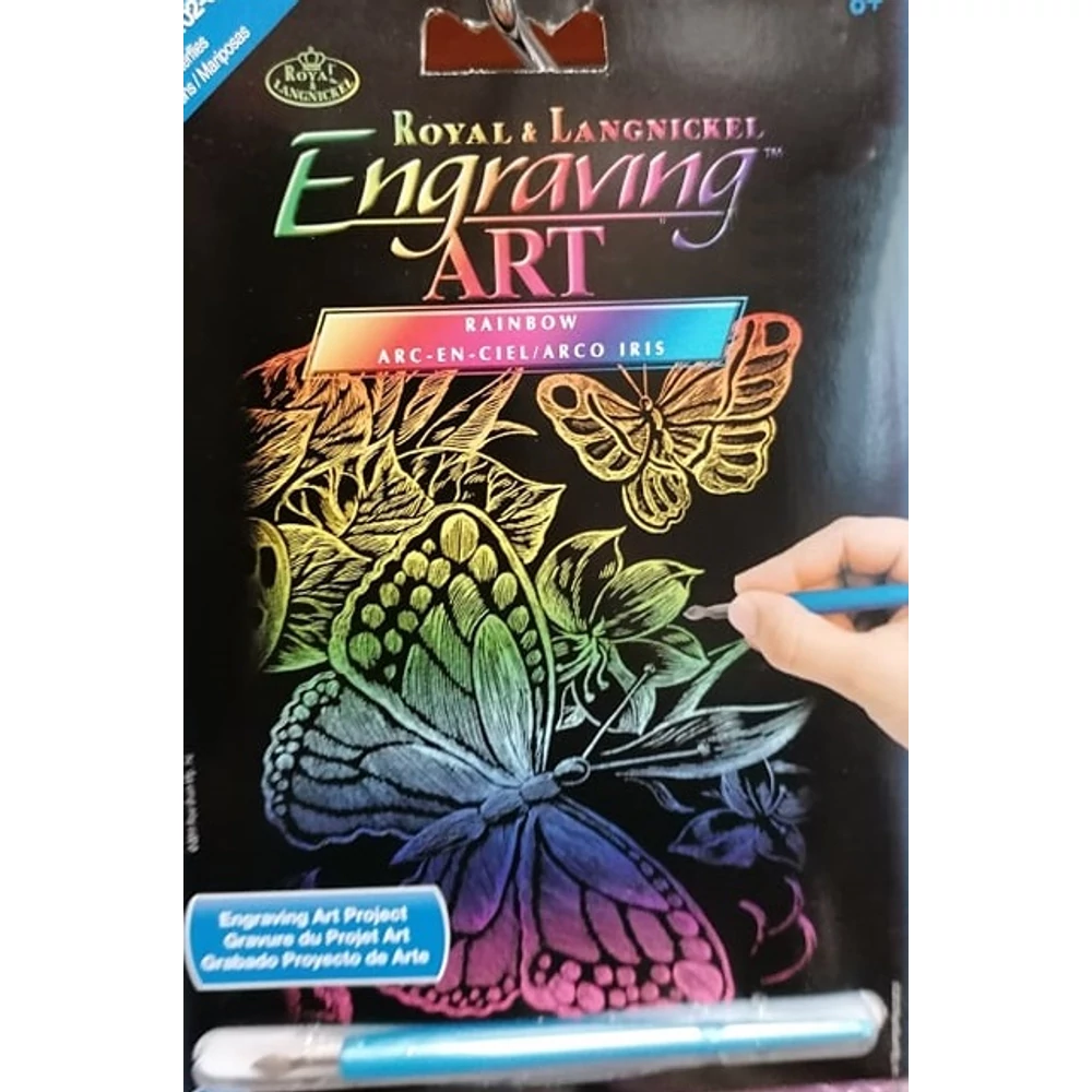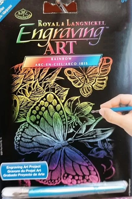 Képkarcoló készlet karctűvel - 13x18 cm - Szivárványos - Pillangók