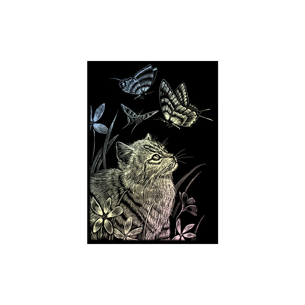 Képkarcoló készlet karctűvel - 13x18 cm - Holográf - Cica és Pillangó
