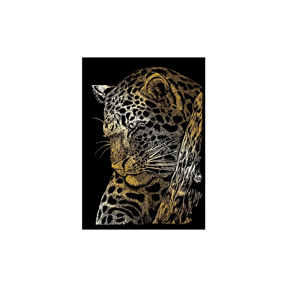 Képkarcoló készlet karctűvel - 13x18 cm - Arany - Leopárd