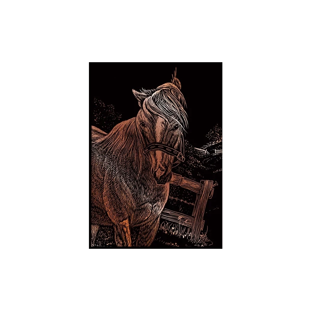 Képkarcoló készlet karctűvel - 13x18 cm - Réz - Ló