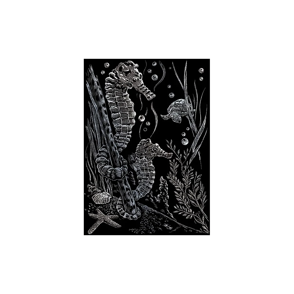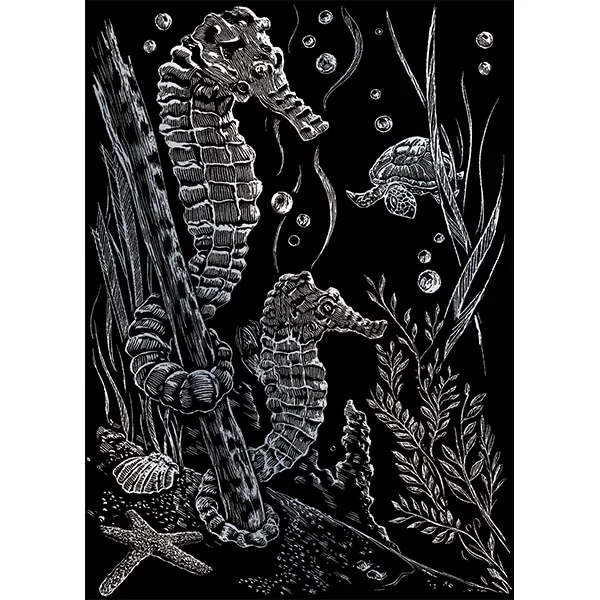 Képkarcoló készlet karctűvel - 13x18 cm - Ezüst - Tengeri csikók
