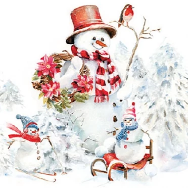 Szalvéta - Túrázó, síelő, szánkózó hóember