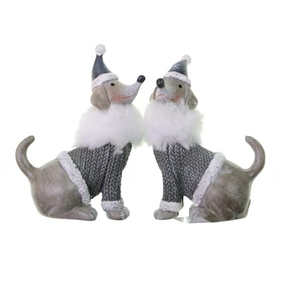 Kutya figura fehér szőrmés sállal, ülő - 1db