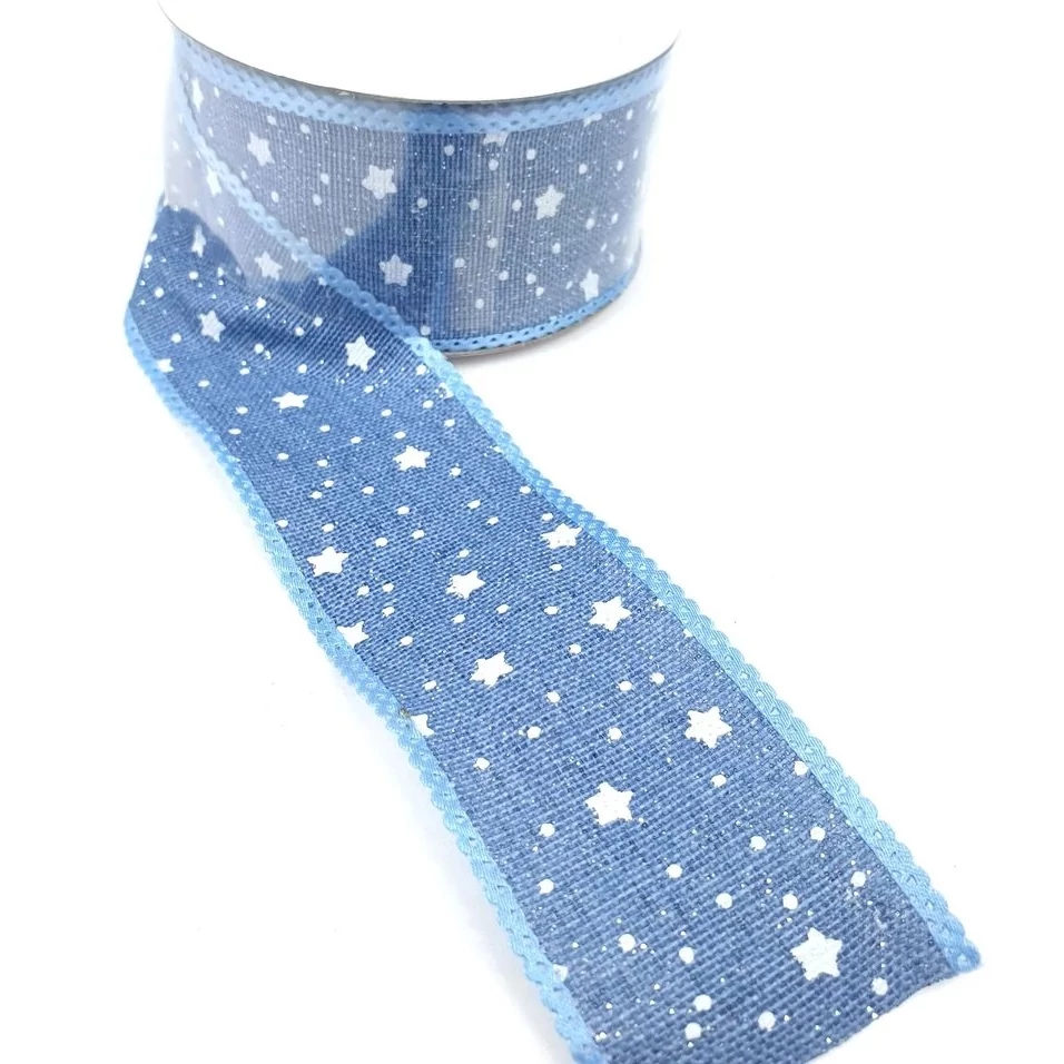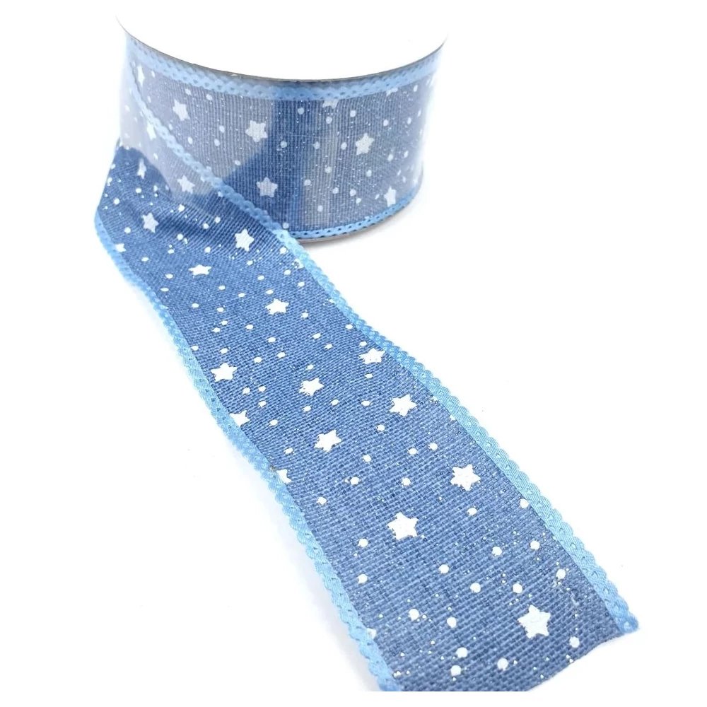 Mini csillagos finomszövésű juta szalag 4cm széles - kék - 1m