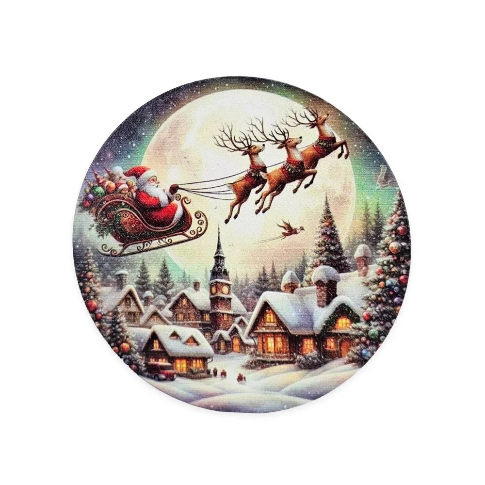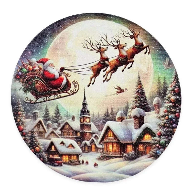 Nyomtatott fa tábla koszorú közép - Télapó a város felett 11,8cm