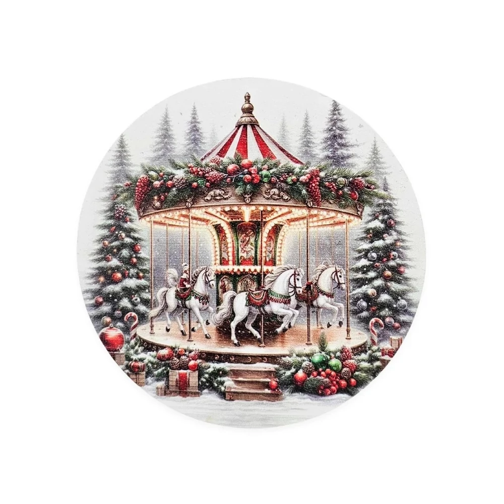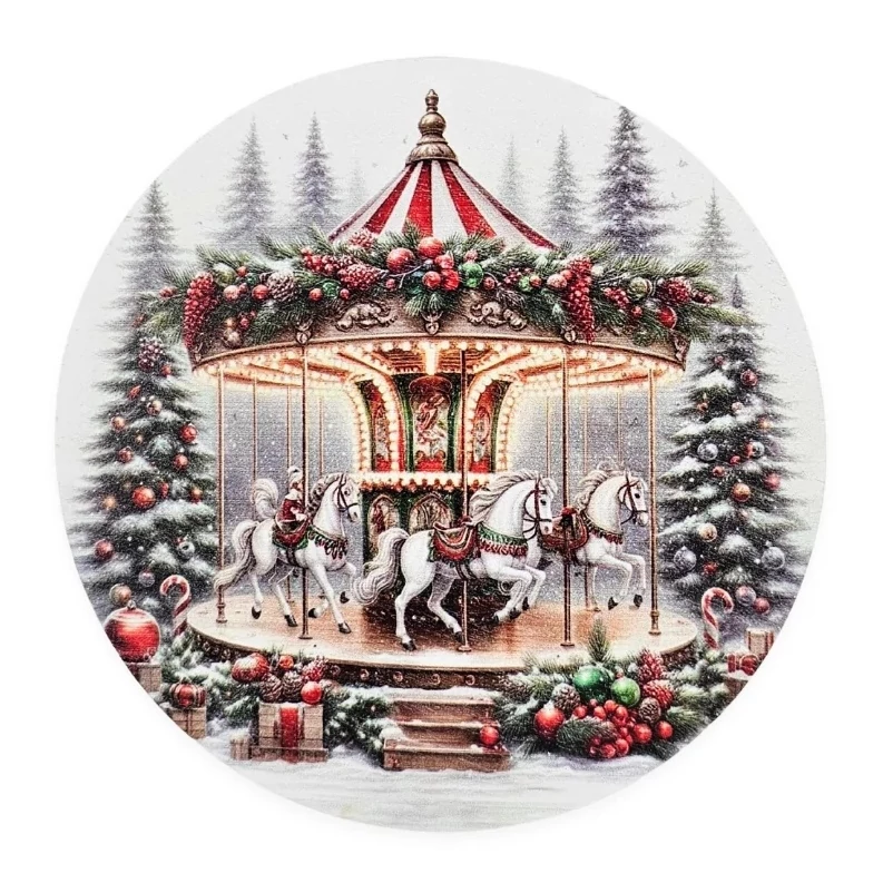Nyomtatott fa tábla koszorú közép - Lovas körhinta 11,8cm