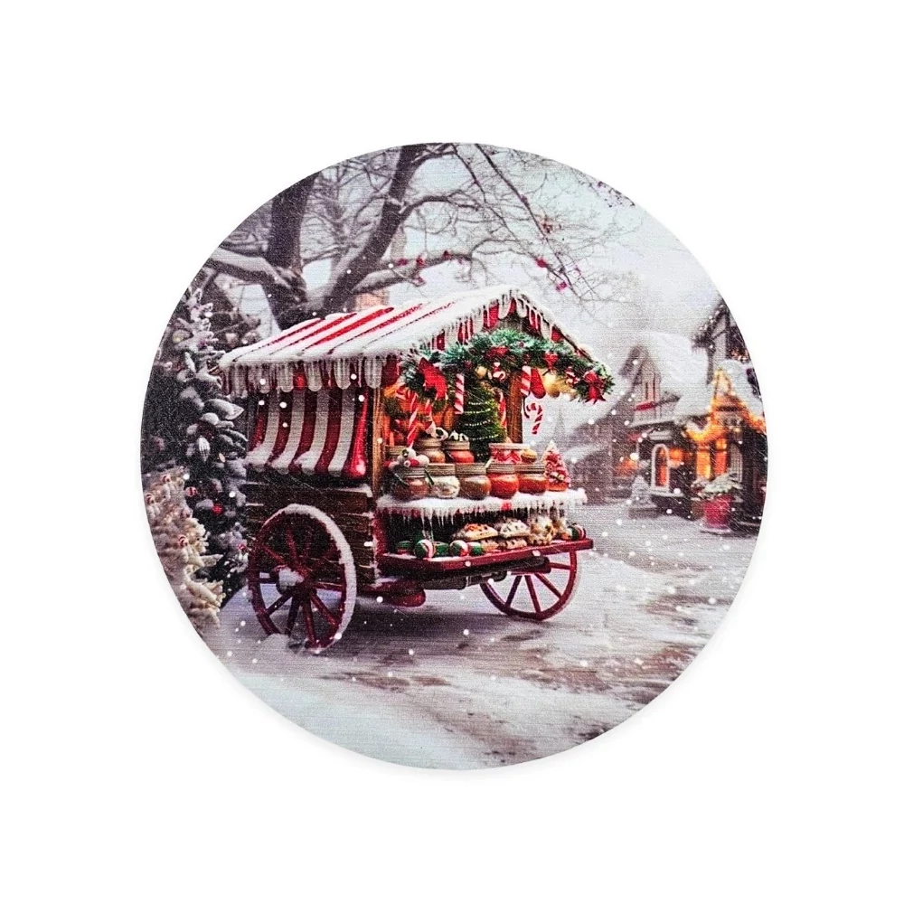 Nyomtatott fa tábla koszorú közép - Karácsonyi vásár 11,8cm