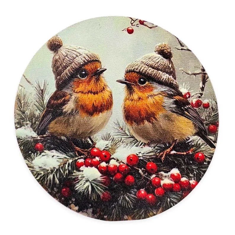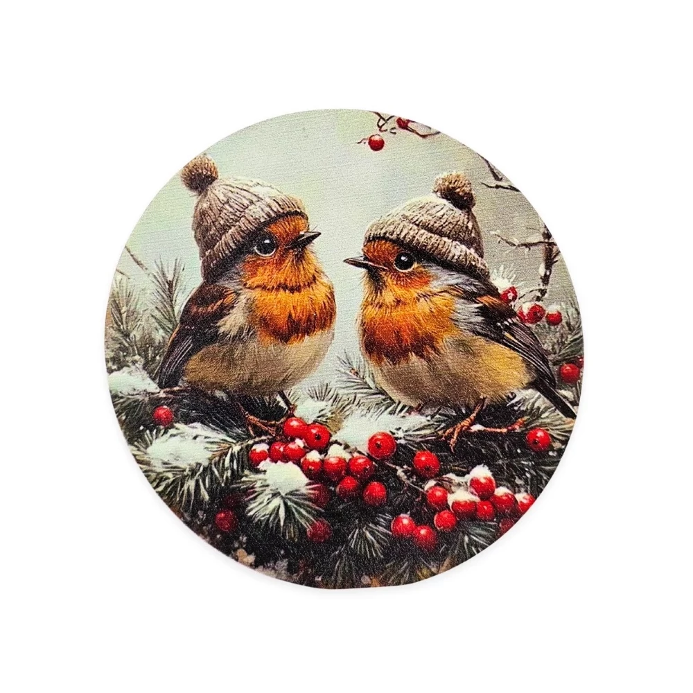 Nyomtatott fa tábla koszorú közép - Sapis vörösbegyek 11,8cm
