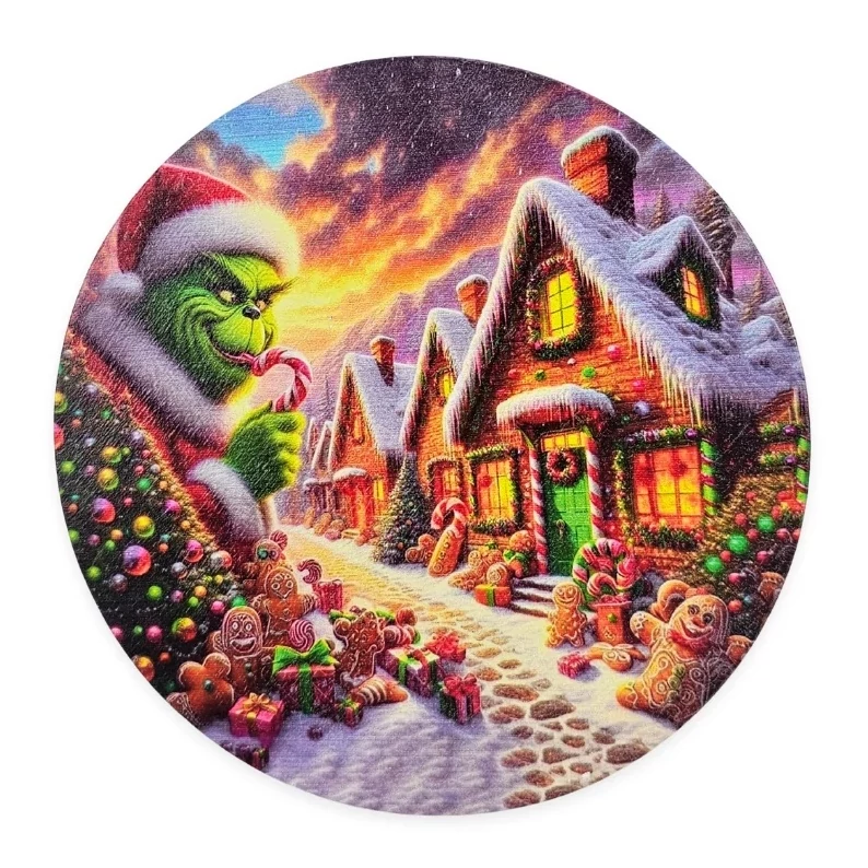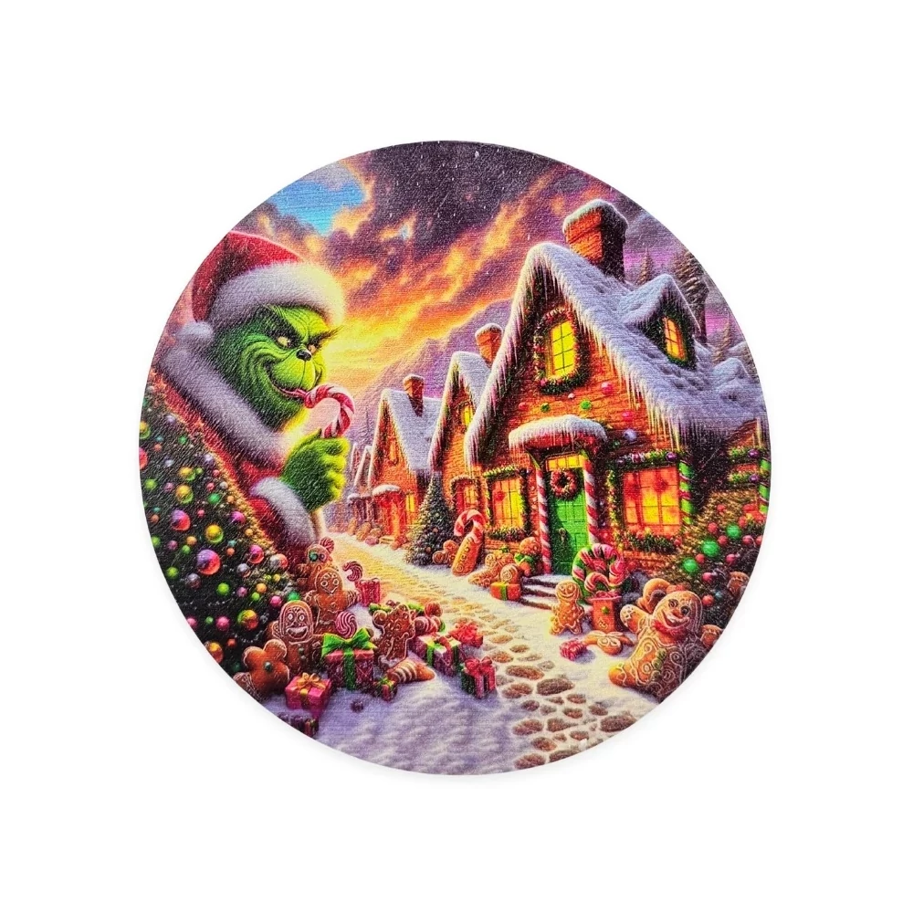 Nyomtatott fa tábla koszorú közép - Grinch mézifalván 11,8cm