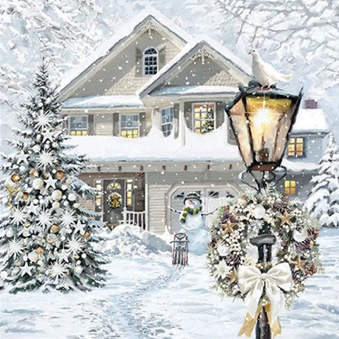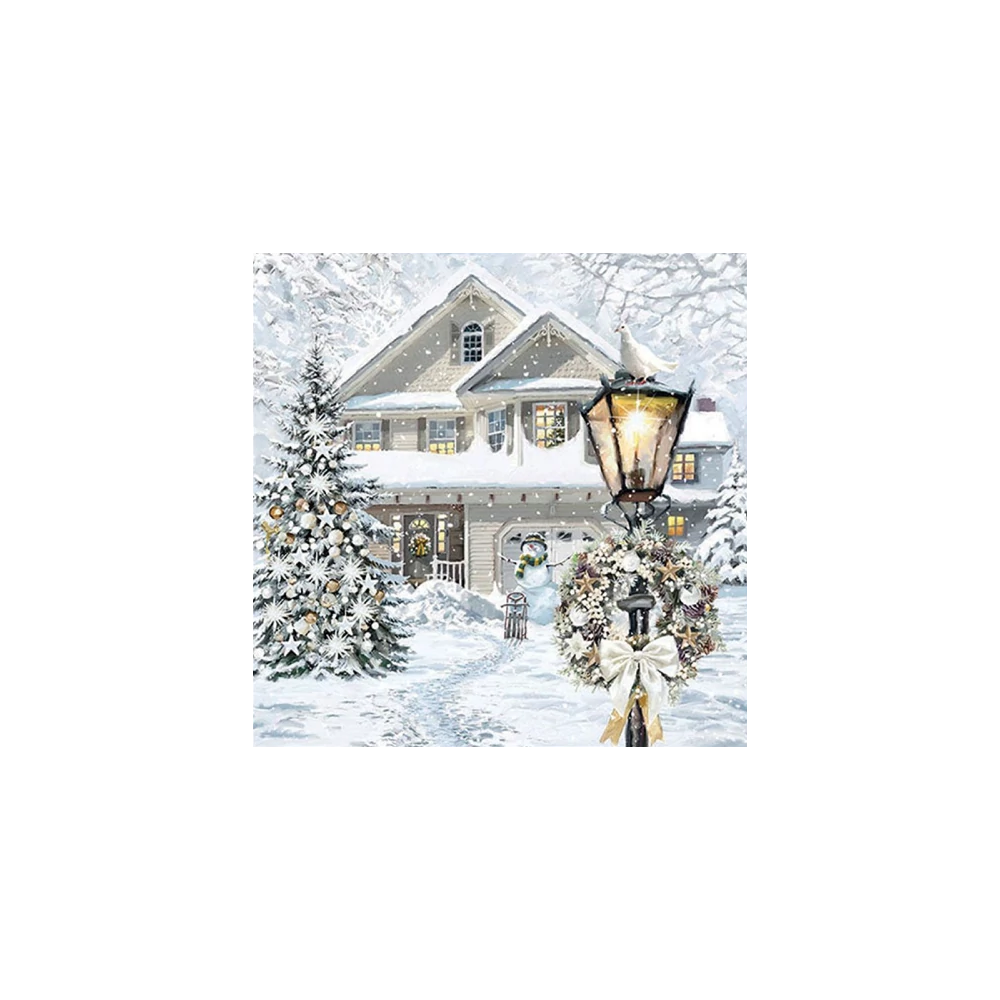 Szalvéta - Havas házikó karácsonyfával