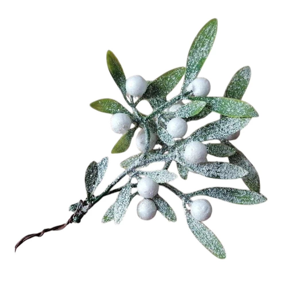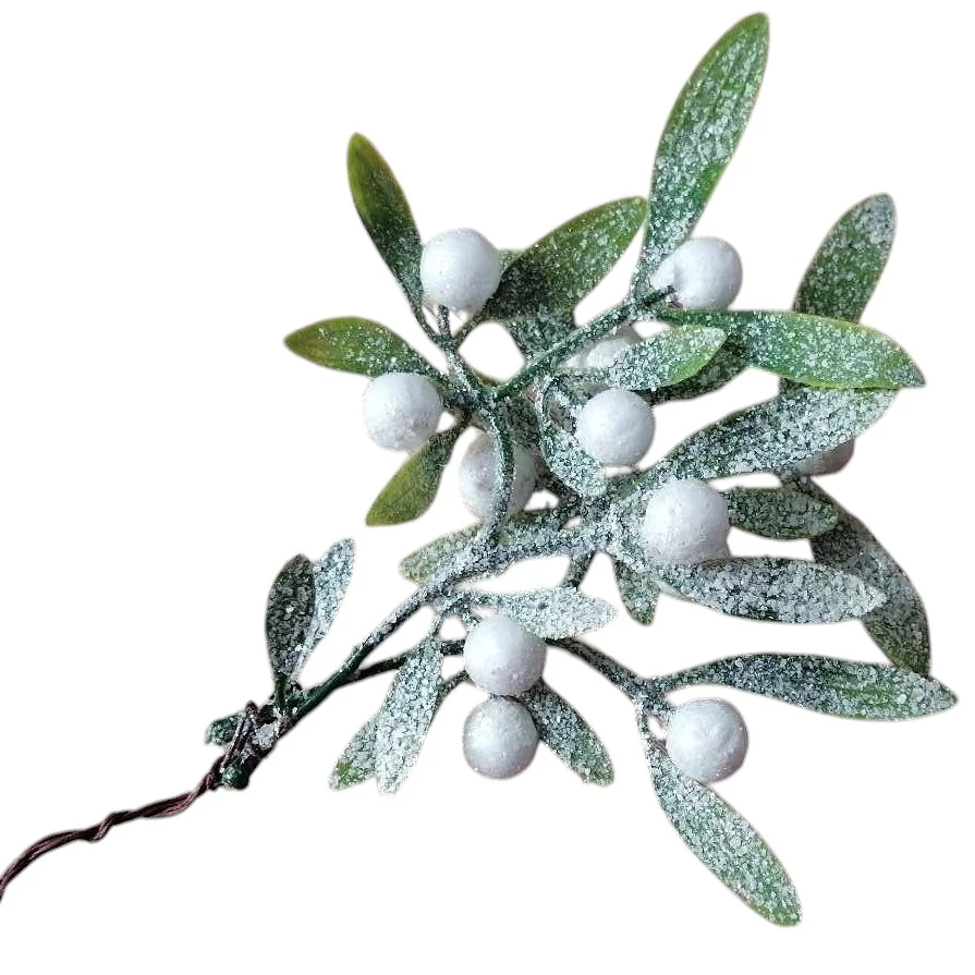 Téli pick,dekoráció, fehér (csillogós) bogyókkal, jeges zöld levelekkel.