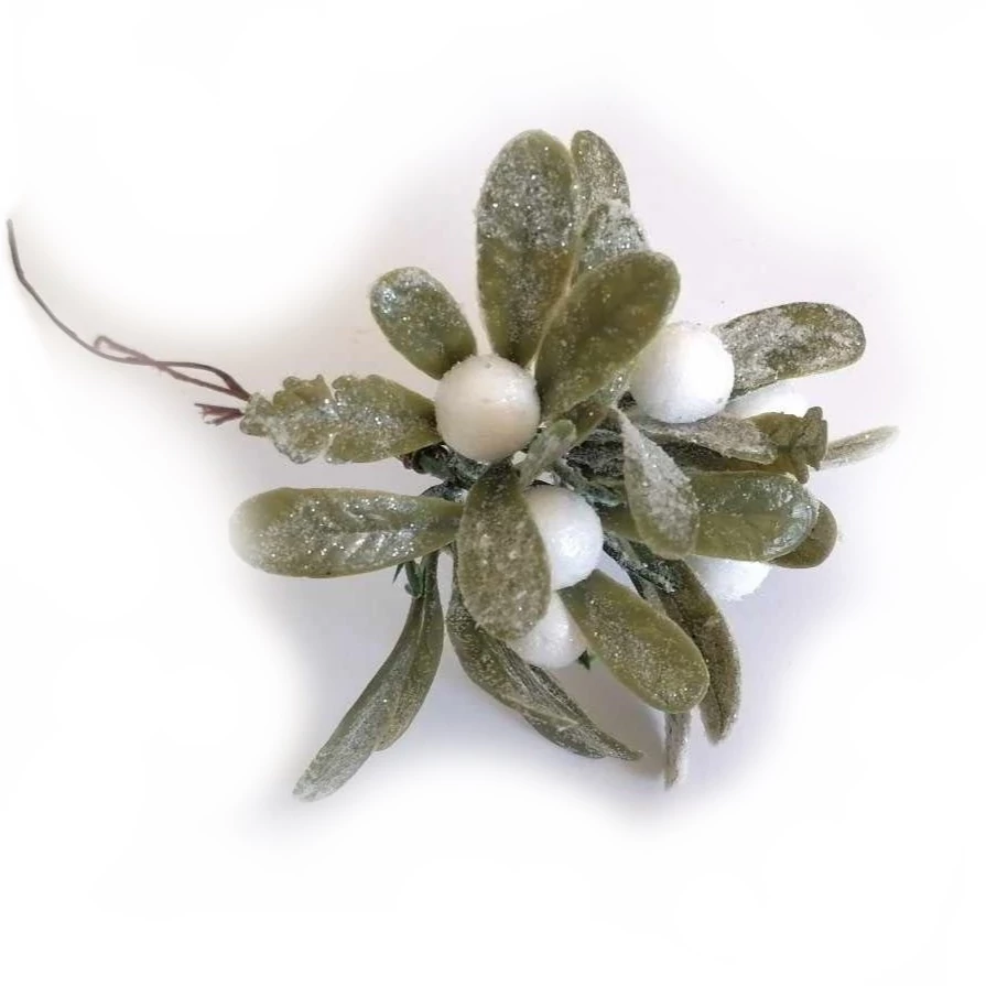 Téli pick,dekoráció, fehér (csillogós) bogyókkal, jeges zöld levelekkel.